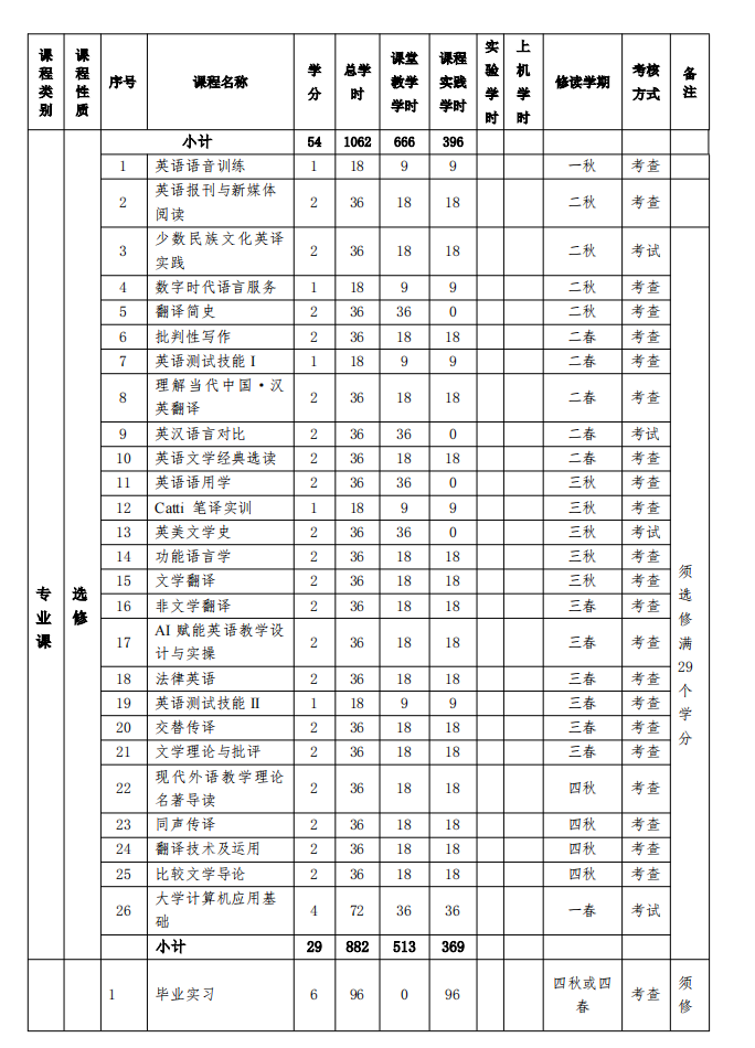 2025版英语专业课程设置