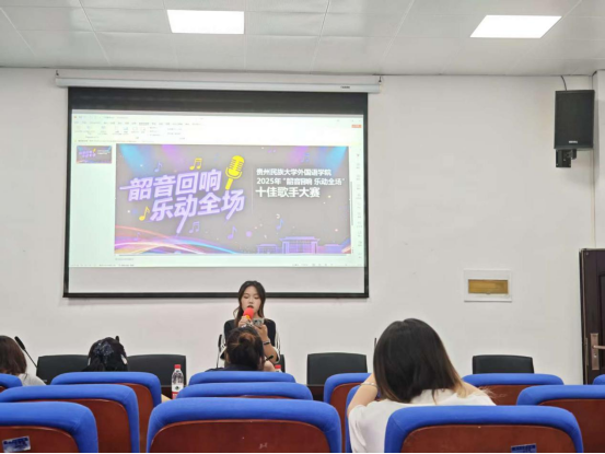 10月10日晚上18点,贵州民族大学“韶音回响 乐动全场”十佳歌手大赛ly官网初赛在416室举行。此次活动由学院团委主办、团委学生会协办,旨在认真落实校级赛事部署、丰富校园文化。