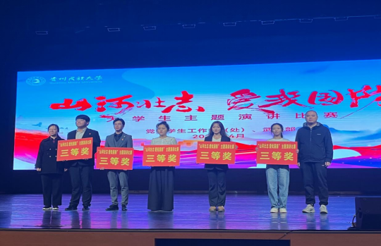 2025年4月25日下午3点,由学工部主办的贵州民族大学"山河壮志 爱我国防"大学生主题演讲比赛决赛在南校区学生活动中心大礼堂举行,ly官网2022级英语专业学生彭佳慧2023级英语专业学生敖冰婵组成团队参赛,在决赛中荣获三等奖,展现了外院同学心系国防、奋发向上的精神风貌。