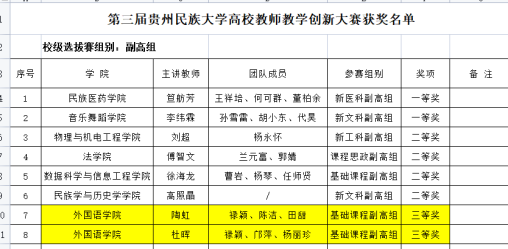第三届贵州省高校教师教学创新大赛获奖名单