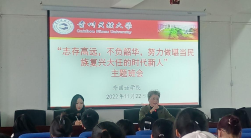 为全面学习把握落实党的二十大精神,持续推进落实“三联系”工作,切实把思想政治工作做到实处,努力实现全员育人、全程育人、全方位育人,根据学校整体工作部署并结合我院实际,我院于11月22日下午三点在花溪校区15号综合教学楼1109会议室召开了“志存高远,不负韶华,努力做堪当民族复兴重任的时代新人”的主题班会。我院党委书记卢文芸出席并发表讲话,2022级全体学生参加,主题班会由班主任郭秋玉主持。