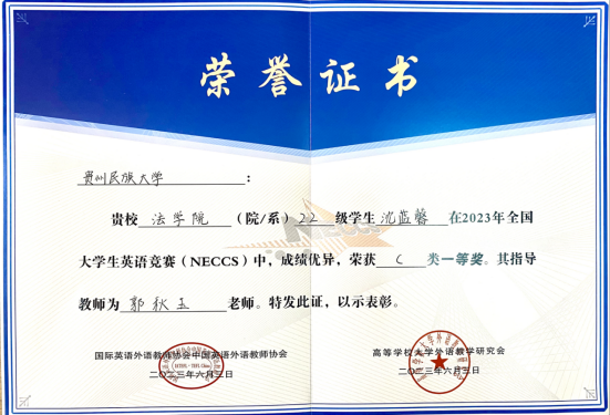 我校在“2023年全国大学生英语竞赛(NECCS)”中喜获佳绩!