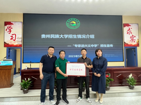 工作组在两天时间内,赴黔西南州兴义中学、兴义市第五中学、兴义市赛文中学三所中学进行了招生宣讲。此三所学校均为我校优质生源输出学校。三位院长分别对学校概况、办学理念、招生录取标准等学生关心的问题进行宣传和解惑,并向兴义中学授予“贵州民族大学优质生源基地”牌匾。