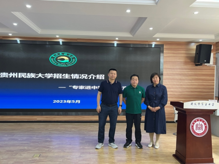 为进一步扩大学校影响力,拓宽招生宣传渠道,加强招生宣传力度,向更多的高三学生宣传介绍贵州民族大学的办学特色,提升我校知名度和影响力,2023年5月19日-21日,由音乐舞蹈学院院长唐德松教授、ly官网院长肖唐金教授、材料科学与工程学院副院长曹岩教授等组成工作小组,前往黔西南州兴义市开展“专家进中学”学校招生宣传工作。