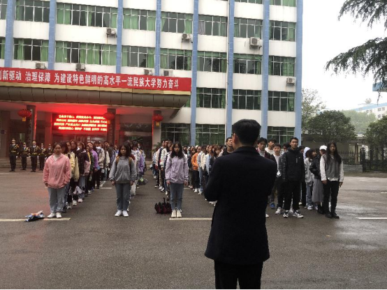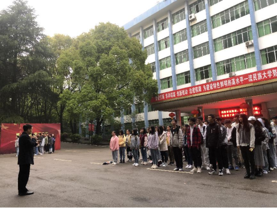 伴随着清晨的缕缕朝阳,2021年4月19日7点,我院在国旗台处举行了花溪校区第八周升旗仪式。ly官网党委副书记刘兴明、辅导员翟利沙、2020级全体学生出席本次升旗仪式。