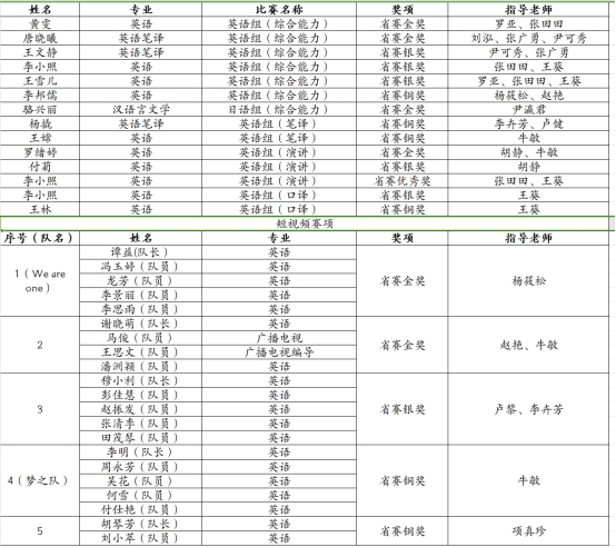 获奖学生、团队及指导教师一览表