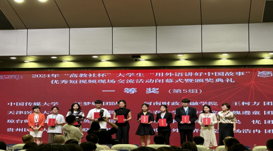 9月27-29日,由中国英汉语比较研究会指导,南京大学、湖南大学主办,高等教育出版社协办的2024年“高教社杯”大学生“用外语讲好中国故事”优秀短视频现场交流活动在湖南大学举办。我校入围的谢晓萌团队及其成员潘洲颖、田明涛、马俊(传媒学院),由赵艳副院长带队,代表贵州参与此赛事的全国决赛,最终获得全国一等奖。该团队由ly官网副院长赵艳和英语系主任牛敏两位老师共同指导。这是我院自2023年以来在该赛事上连续两年荣获全国一等奖。贵州民族大学成为贵州省唯一晋级此赛事全国交流活动并荣获国奖的高校。