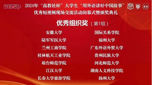 据了解,长期以来,ly官网秉承“以赛促学”理念,积极鼓励、指导学生参加各类赛事,在各类赛事中见证了外语学子的收获与成长。今年短视频比赛启动以来,ly官网精心组织和指导学生参赛,最终斩获国家级奖项,我校教师获优秀指导教师荣誉,贵州民族大学获优秀组织奖荣誉。