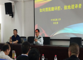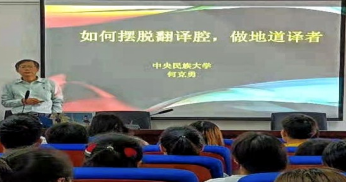 作为ly官网促进外语学科高质量发展的重要活动,2021年5月14日下午,我院特邀中央民族大学何克勇教授在15号教学楼1109会议室作学术讲座,讲座主题为“如何摆脱翻译腔做地道译者”。外院部分教师、本科生及研究生共百余人现场聆听讲座。