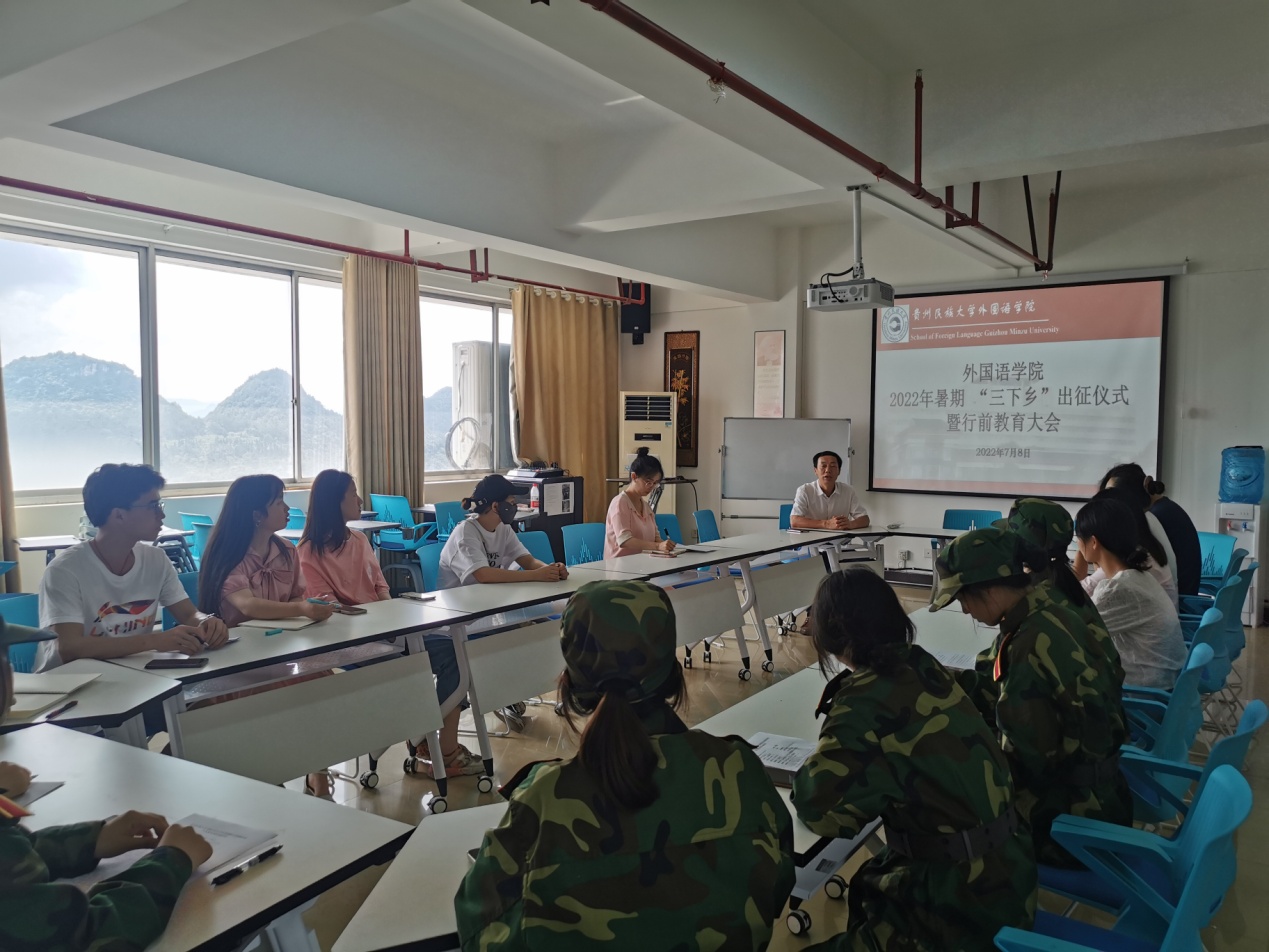 在本次大会上,刘兴明副书记向各团队提出了三点要求:首先是安全问题,团队老师和同学组织、参与的一切活动都要以师生的生命、财产安全作为前提,特别是现在天气炎热,绝对不能下河洗澡;其次是要有集体意识,同学们的衣食住行等一切需听从指导老师安排,不得脱离集体单独行动;最后是到当地需要尊重当地的风俗习惯、民族文化等,更不得破坏当地自然环境、人文景观。