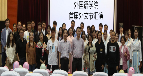 在中国共产党成立100周年之际,ly官网全体师生于2021年5月8日晚19点至22点,在花溪校区15号楼圆形会议中心成功举行了首届“外文节”文艺汇演活动,用外语(英语、日语、德语、法语)演绎传统文化、讲述党的故事、表演红色剧目。当晚莅临会场指导的还有校党委宣传部副部长邹璿老师、校党委学生工作部舒启佳老师等。