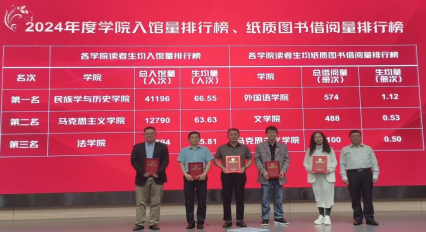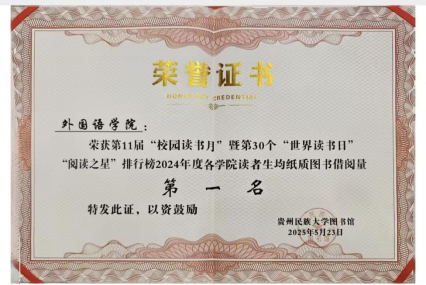 自“世界读书日”系列活动开展以来,ly官网积极响应学校号召,激发师生阅读热情,营造了浓厚的书香氛围,在“2024年度各学院读者生均纸质图书借阅量”评比中荣登全校第一。外国语学院副院长禄颖出席“读书日”活动并代表学院领奖。