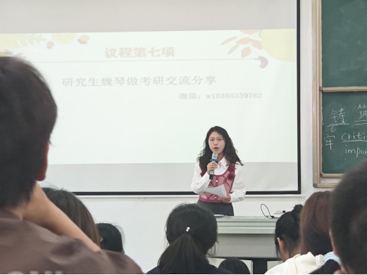 紧接着,2024级研究生李展考和魏琴向各位新生分享了关于研究生备考策略、时间管理以及心态调整等方面的经验,并强调了持之以恒和自我激励的重要性。