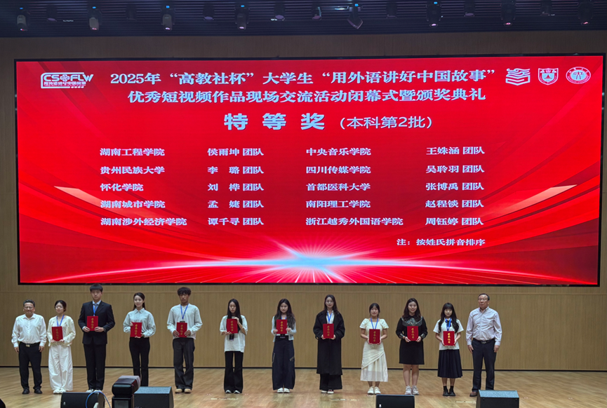 2025年9月19日-21日,“高教社杯”大学生“用外语讲好中国故事”优秀短视频现场交流活动在江汉大学举行。此次短视频作品征集活动的主题是“新时代·新变化----时潮奔涌、青春不凡”。来自全国29个省、自治区、直辖市的1093所院校的大学生参加了该项赛事,提交的短视频作品达6915件。
